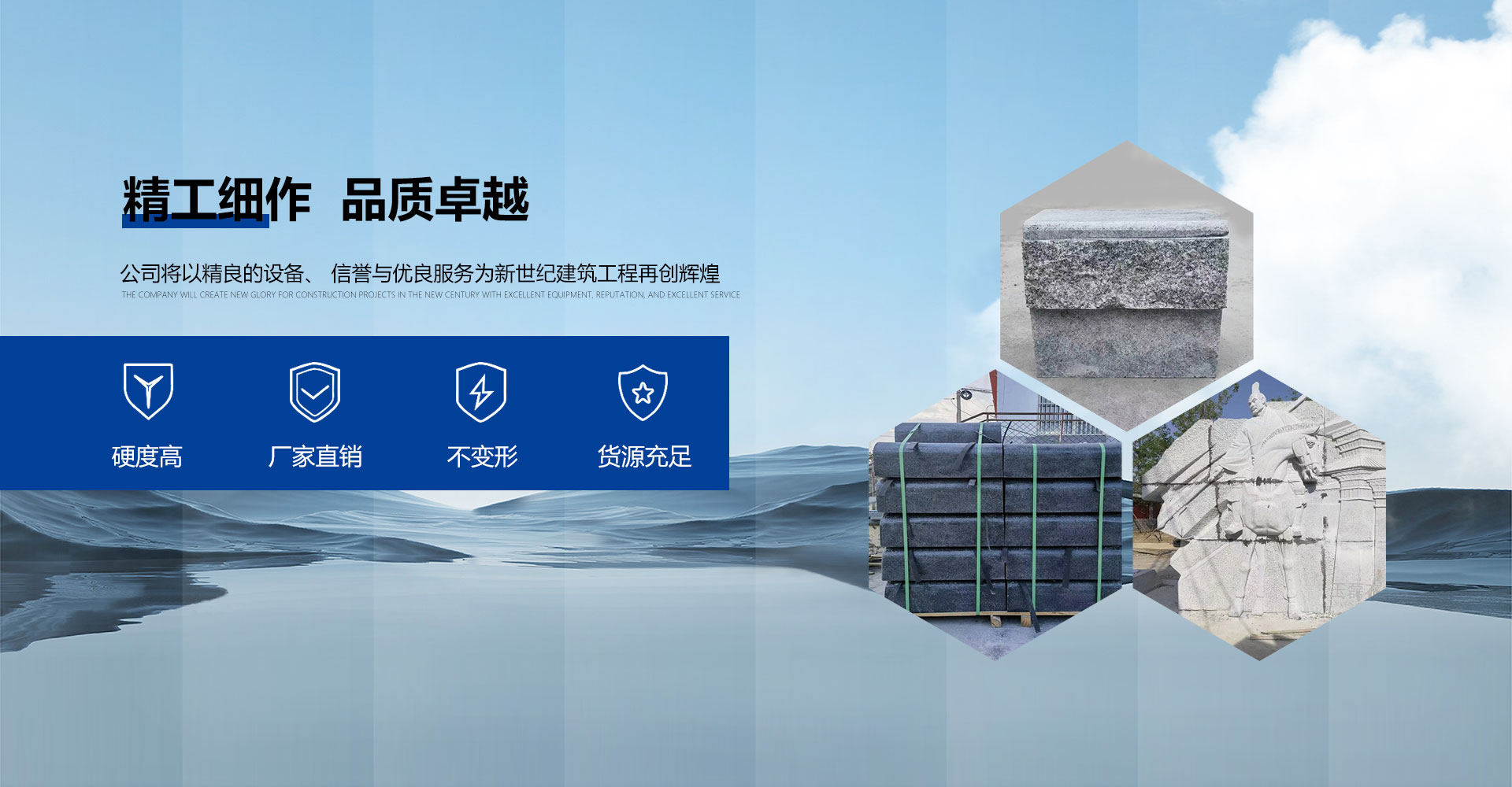 公司奉行“质量为首、信誉为主”的宗旨, 近年来公司与城建商合作建造了诸多大型建筑、石材工程遍各地。公司将以精良的设备、 信誉与优良服务为新世纪建筑工程再创辉煌。